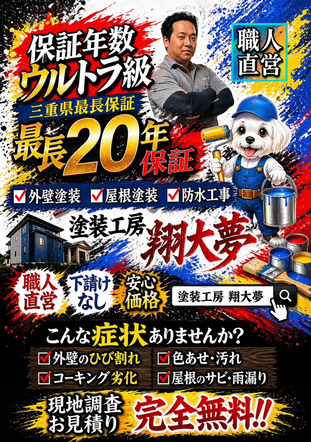 三重県で外壁塗装・屋根塗装なら「塗装工房 翔大夢」へ|最長20年のウルトラ級保証と職人直営の安心価格