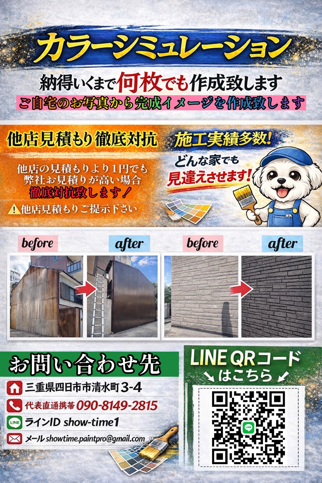 「塗り終わってみたらイメージと違った」という後悔をゼロにしたい。だからこそ、ご自宅の写真を使ったシミュレーションは、納得がいくまで何度でも無料で作成します。